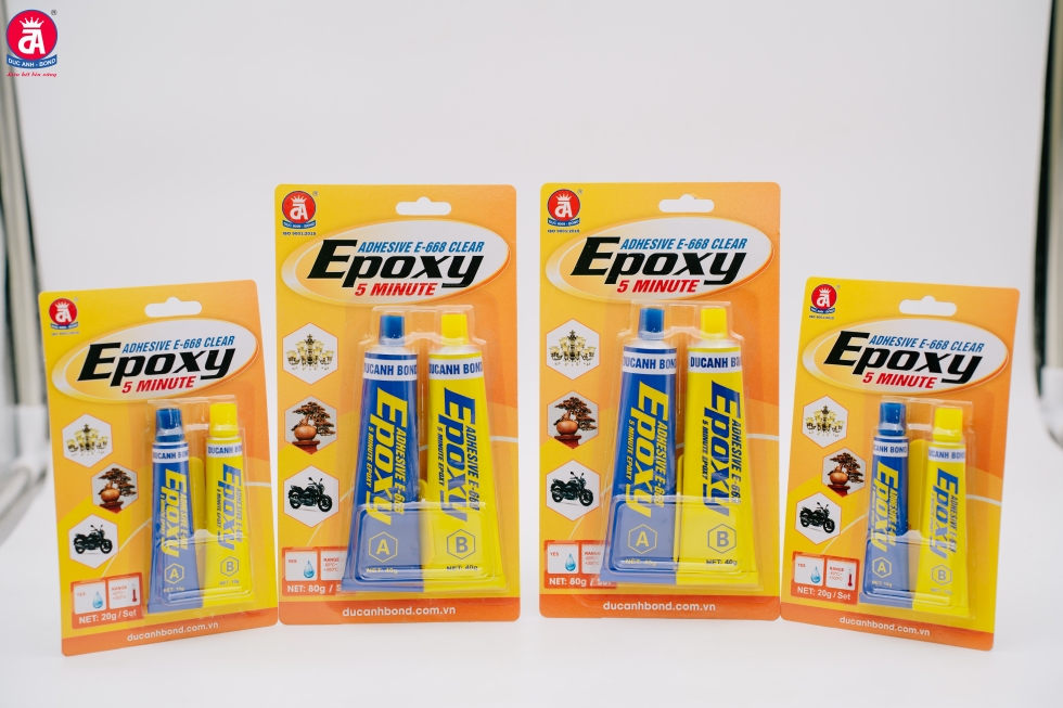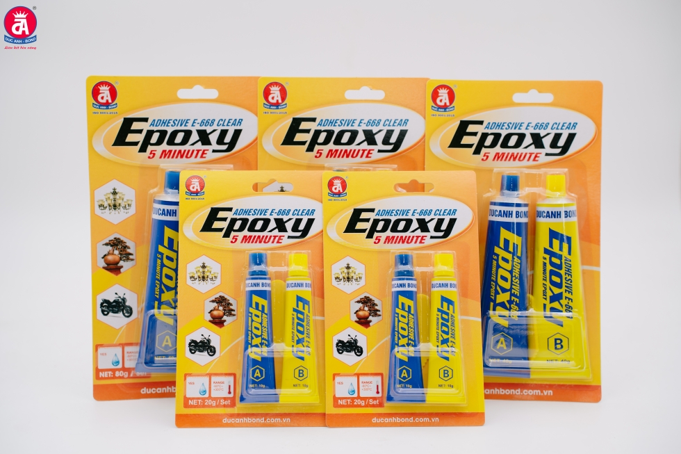 Keo Epoxy 2 thành phần E 668 Đức anh thế hệ mới với bao bì sản phẩm tiện ích cho người dùng