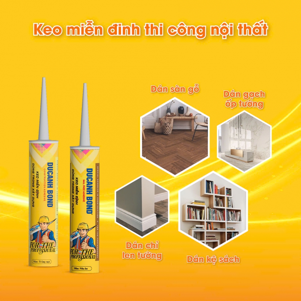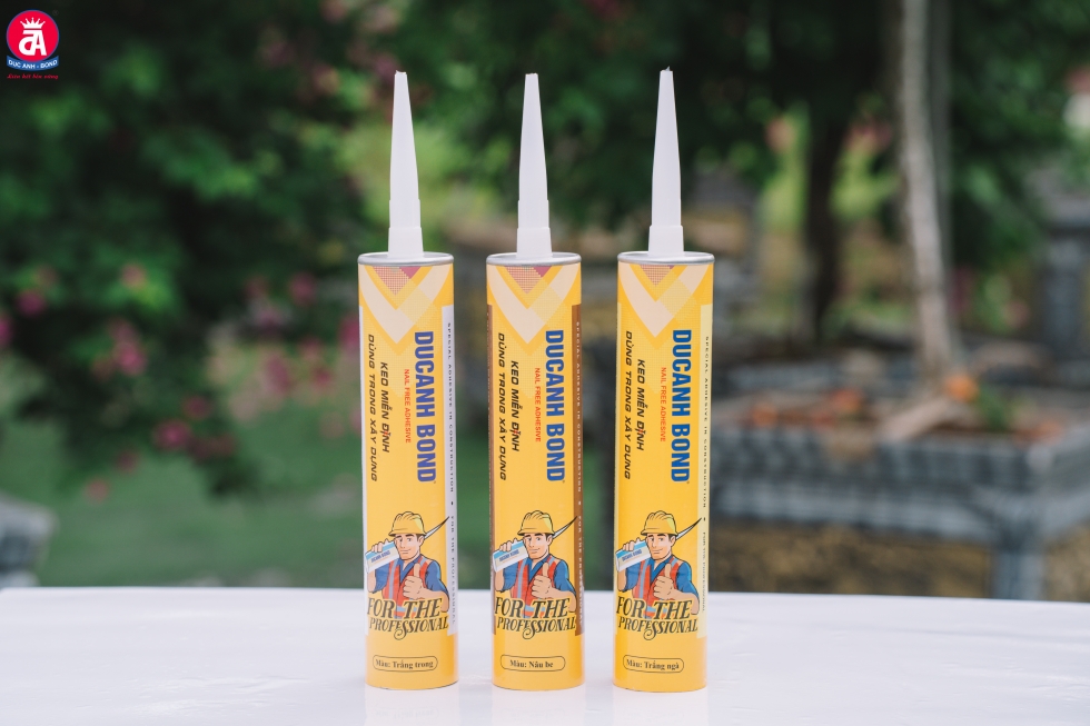 + Keo miễn đinh Đức Anh: Keo dán chuyên dụng, đảm bảo độ kết dính cao, dễ thi công và an toàn cho sức khỏe.