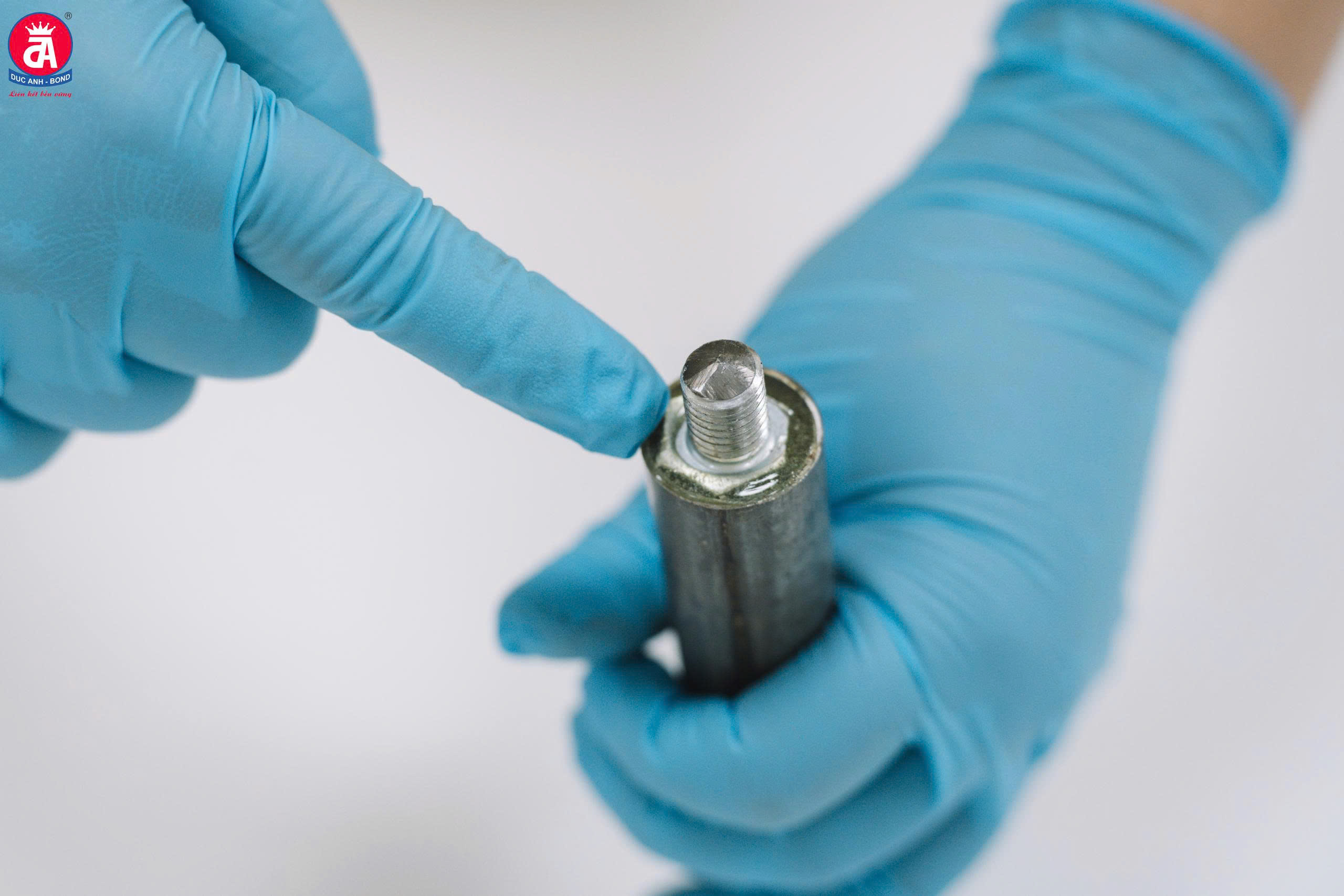 + Ép chặt hai mặt kim loại lại với nhau, đảm bảo keo lan tỏa đều khắp bề mặt tiếp xúc.