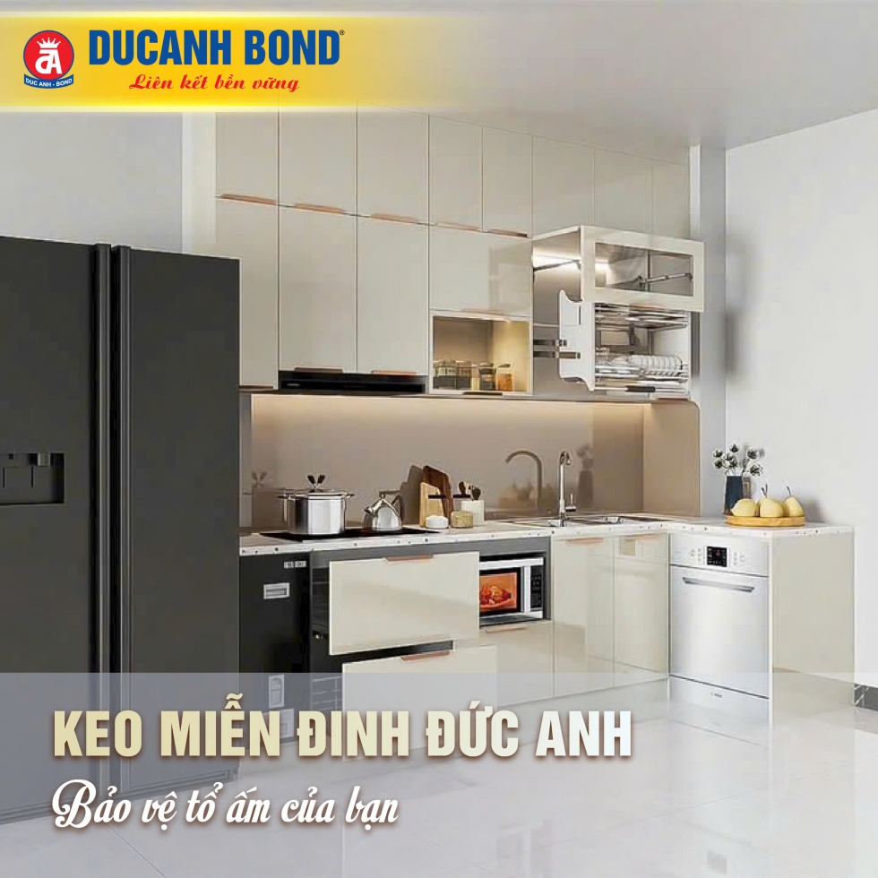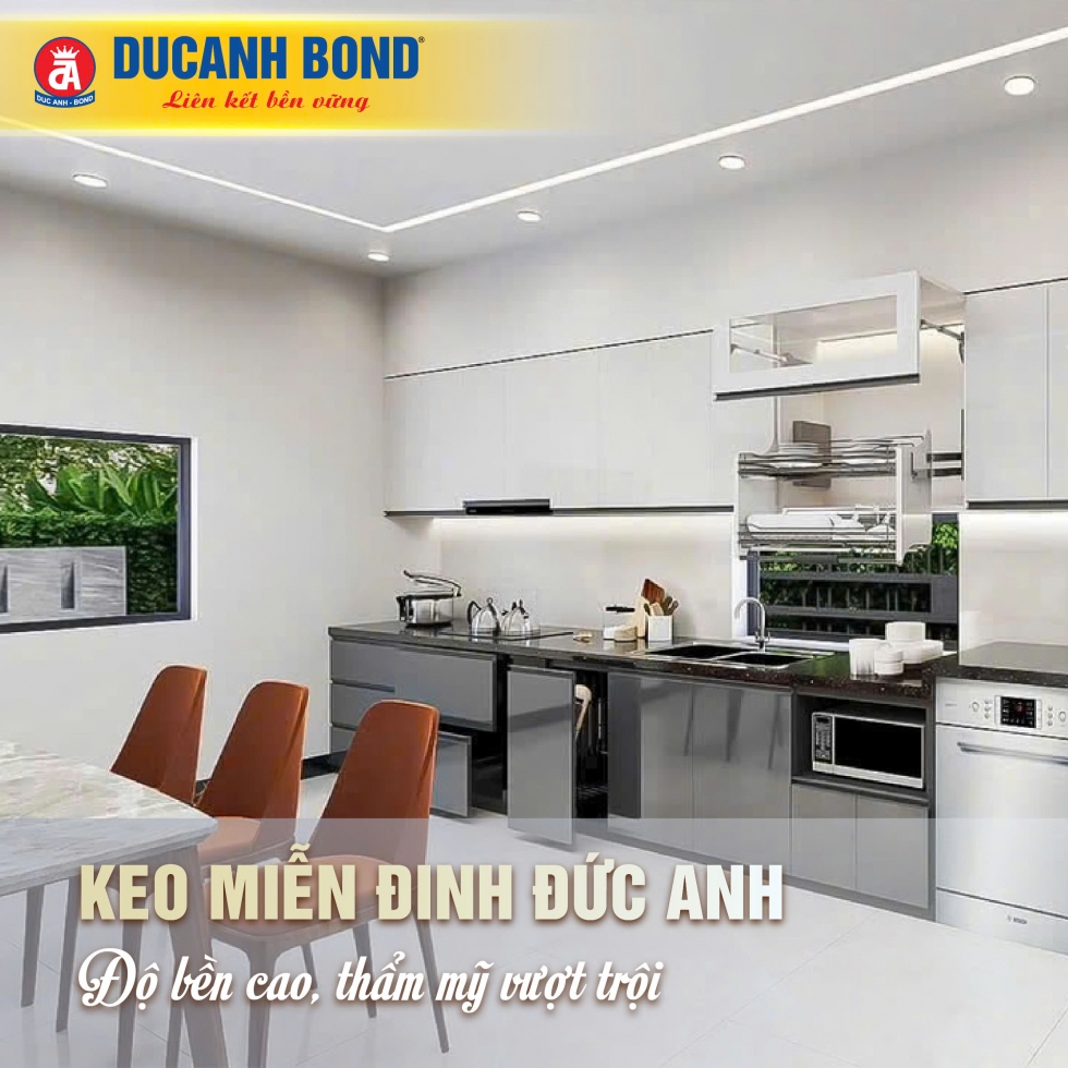 Khả năng chống nước vượt trội, chịu lực tốt của keo Miễn Đinh Đức Anh giúp giữ kết dính bền vững ngay cả trong môi trường nhà bếp ẩm ướt.