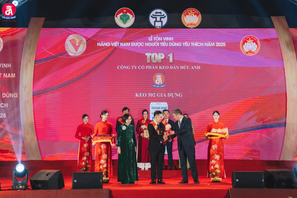 Tối ngày 29/11/2025, tại lễ tôn vinh “Hàng Việt Nam được người tiêu dùng yêu thích” do Sở Công Thương Hà Nội tổ chức, DUCANH BOND tự hào được vinh danh ở vị trí Top 1 sản phẩm được người tiêu dùng yêu thích năm 2025.