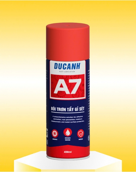 Bôi trơn tẩy gỉ sét A7 là sản phẩm 2 trong 1 giúp loại bỏ nhanh gỉ sét và bôi trơn các chi tiết kim loại một cách hiệu quả. Với công thức chuyên dụng, sản phẩm vừa tẩy gỉ, vừa bảo vệ bề mặt kim loại, tăng tuổi thọ thiết bị và đảm bảo vận hành trơn tru.