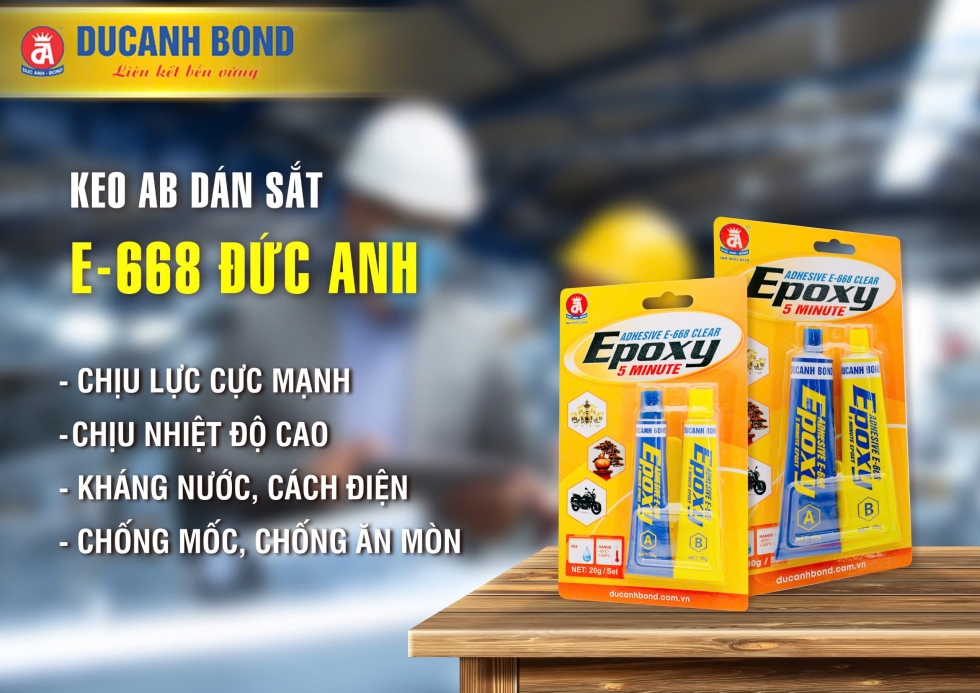 Keo Epoxy 2 thành phần E 668 Đức anh thế hệ mới với bao bì sản phẩm tiện ích cho người dùng