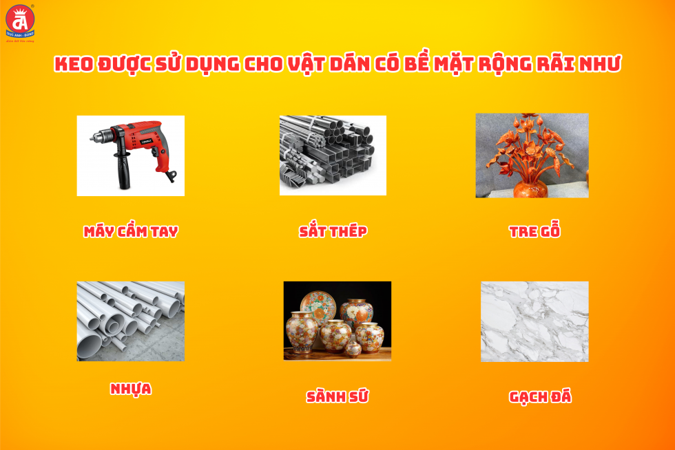 + Keo khô hoàn toàn từ 4 giờ đến 24 giờ, tùy theo kích thước và loại vật liệu dán.