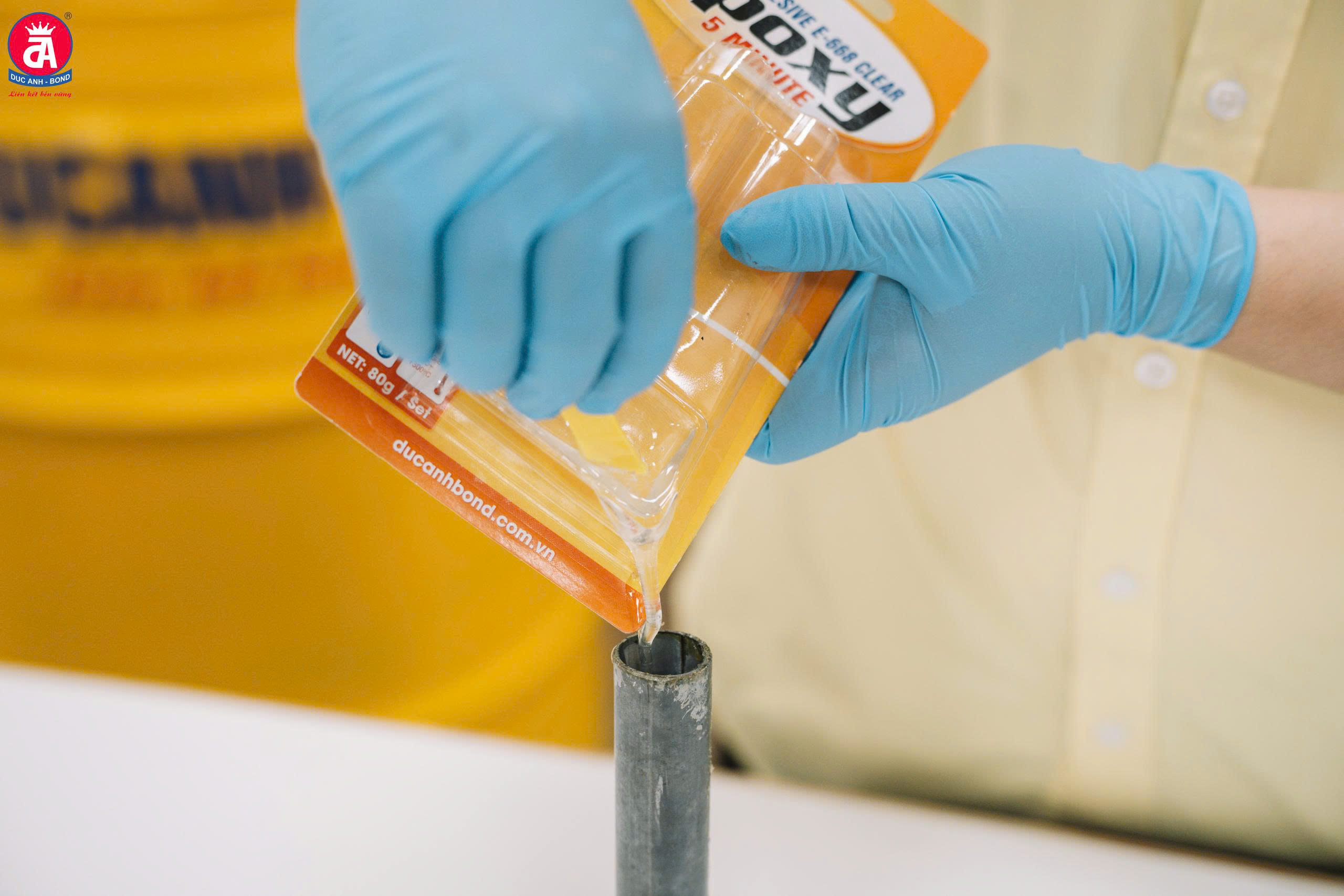 Pha trộn keo epoxy 2 thành phần E 668 Đức Anh đúng tỉ lệ giúp keo đạt độ bám dính và độ cứng tối ưu