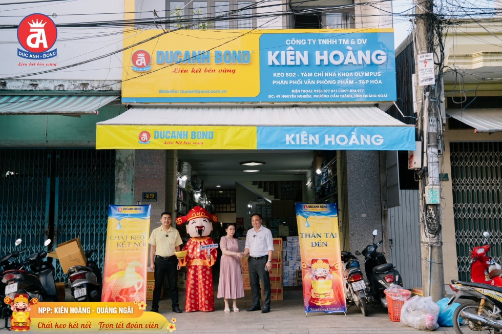 Trên hành trình phát triển, điều DUCANH BOND trân trọng không chỉ là sự tin tưởng dành cho sản phẩm, mà còn là tinh thần hợp tác lâu dài, cùng nhau xây dựng hệ thống phân phối ổn định, vững chắc tại từng địa phương. Nhà phân phối Kiên Hoàng chính là một trong những đối tác tiêu biểu tại Quảng Ngãi, góp phần đưa các sản phẩm keo dán DUCANH BOND đến gần hơn với người tiêu dùng, đáp ứng hiệu quả nhu cầu thi công, sửa chữa và sản xuất tại khu vực.