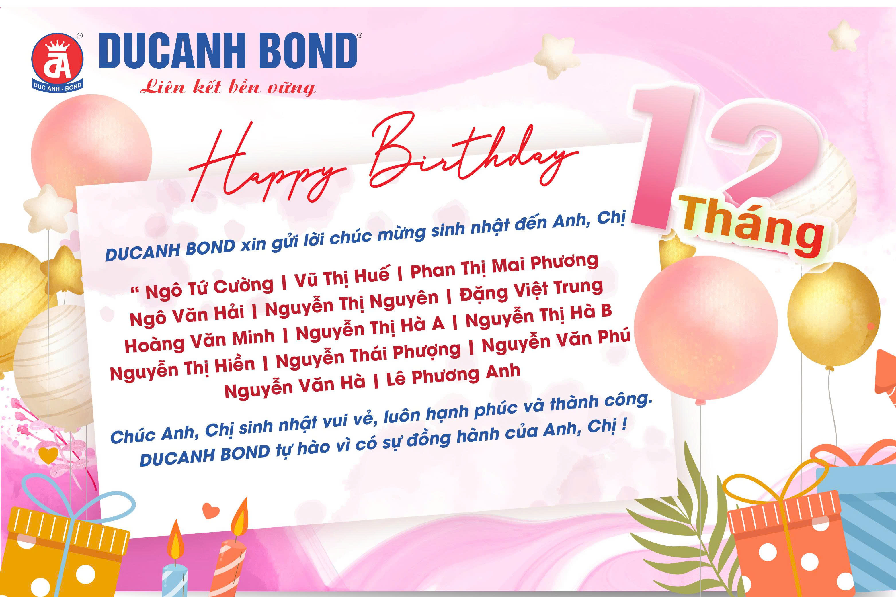Lời chúc mừng sinh nhật tốt đẹp nhất đến cán bộ công nhân viên tháng 12.2025 của DUCANH BOND.