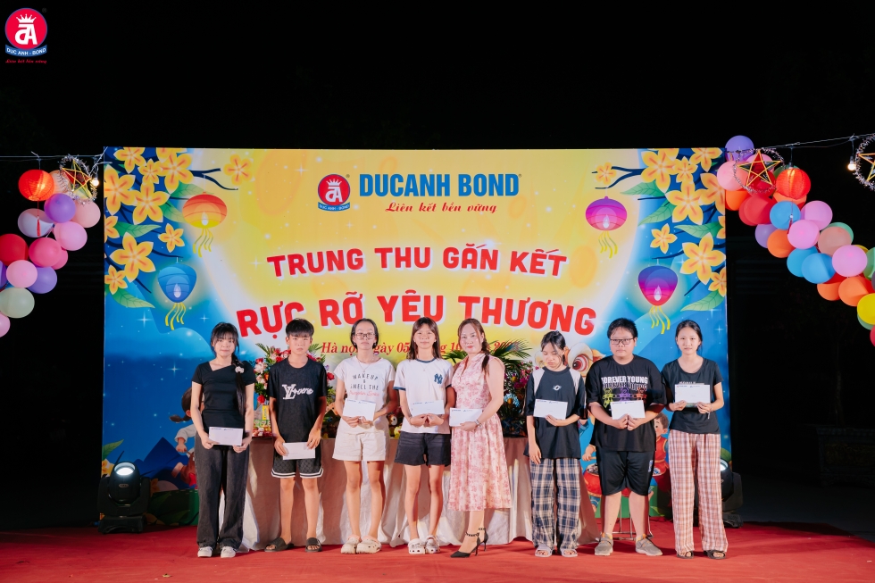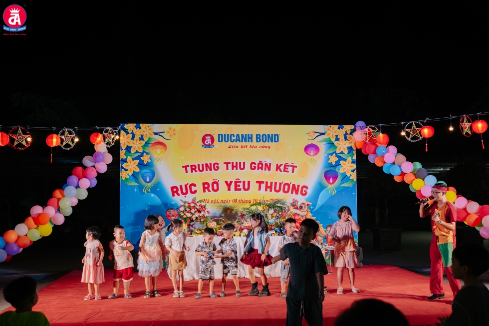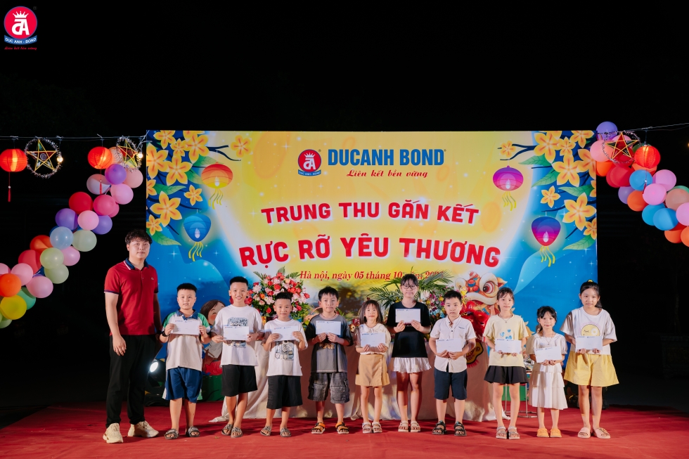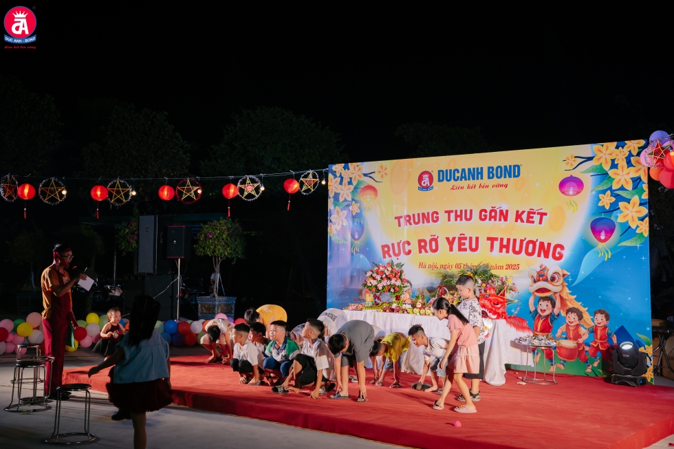 Hòa chung không khí vui tươi, phấn khởi của thiếu nhi cả nước chào đón Tết Trung thu. Tối ngày 05/10/2025, Công ty Cổ phần Keo dán Đức Anh đã tổ chức thành công tốt đẹp chương trình “TRUNG THU GẮN KẾT – RỰC RỠ YÊU THƯƠNG” dành cho toàn thể con em CBCNV. Sự kiện không chỉ mang đến cho các em một đêm hội trăng rằm tràn ngập niềm vui và tiếng cười, mà còn là dịp để DUCANH BOND trao quỹ khuyến học, khích lệ tinh thần, động viên con em CBCNV nỗ lực học tập trở thành con ngoan, trò giỏi.